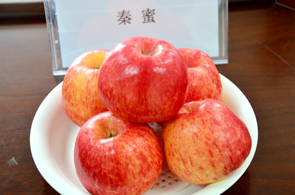 在我校洛川苹果试验站,陕西省果树品种审定委员会专家组经过现场观摩品尝,听取汇报、查阅资料、质疑答辩后,认为“秦脆”是一个综合性状优良的晚熟苹果新品种,“秦蜜”是一个综合性状优良的中晚熟苹果新品种,适宜在陕西苹果产区及同类地区推广,并一致同意通过品种初审。