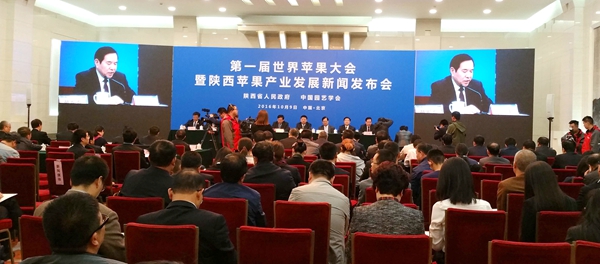 新闻发布会由陕西省政府副秘书长薛建兴主持,陕西省副省长冯新柱致辞,陕西省农业厅厅长白宜勤作主发布并介绍了陕西苹果产业发展情况,中国园艺学会常务副会长、中国农业大学园艺学院院长韩振海介绍第一届世界苹果大会有关情况,农业部食物营养研究所副所长孙君茂介绍了陕西苹果营养价值,中央财经领导小组办公室副主任韩俊在会上讲话。校党委常委、党委宣传部部长、校新闻发言人闫祖书以及校办负责人、园艺学院有关专家参加新闻发布会。