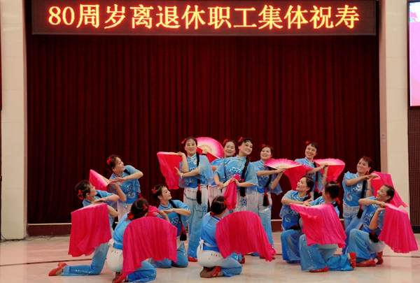 在欢乐祥和的气氛中,离退休职工表演了舞蹈“到吴起镇”“沂蒙情”,教职工艺术团成员表演了“芦花”“祖国慈祥的母亲”,将祝寿会推向高潮。