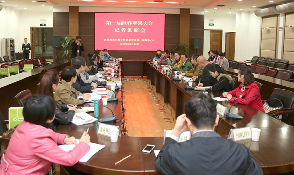 10月12日晚,第一届世界苹果大会学术研讨会媒体记者见面会在我校举行。校党委常委、宣传部长、校新闻发言人闫祖书向到会媒体介绍了我校基本情况,通报了大会筹备工作情况,重点介绍了我校苹果产业前世今生和未来发展。