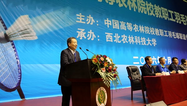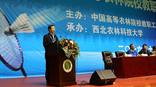 湖南农业大学校长符少辉宣布羽毛球联谊赛开幕