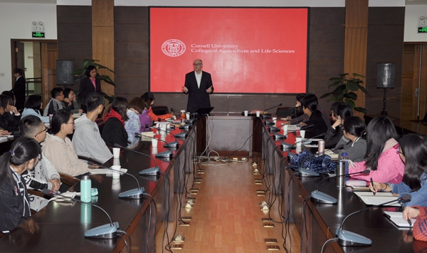 Max Pfeffer教授与研究生院、国际处、植保学院、园艺学院,就学生实习访学项目、暑期课程及研究生导师培训等事宜进行了沟通交流。此次访问,我校与康奈尔大学农业与生命科学学院续签了合作协议,并补充签署了关于加强人员学术交流互访和合作科研项目的协议。