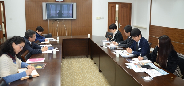 10月25日来自日本京都大学国际高等教育学院韩立友副教授和日本京都府政府国际课藤卷秀和副秘书长来访我校,国际交流处负责接待。双方就两校学院之间科研项目合作,师生交流,推进中日政府间就六日学生申请奖学金等事宜进行了座谈谈论并达成了初步共识。