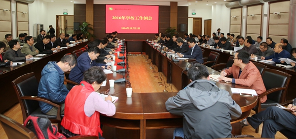 10月21日下午,孙其信校长主持召开2016年第2次学校工作例会。他强调,各级干部要以对学校建设发展和党的事业高度负责的态度,把各项工作时刻放在心上、扛在肩上、抓在手里,以严的标准和实的要求落实各项工作目标责任、促进学校事业持续快速发展。