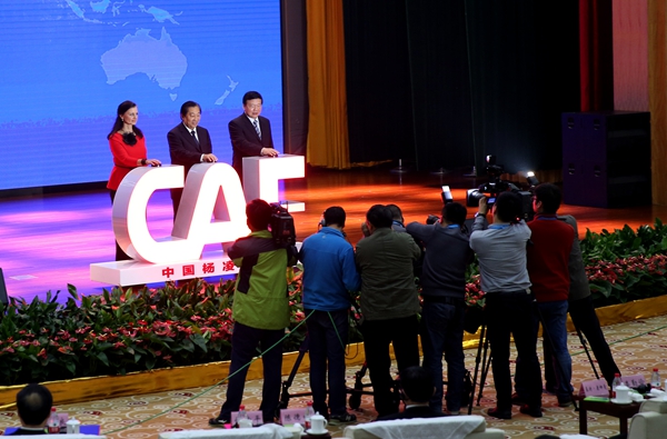 全国政协副主席齐续春,陕西省委书记、省人大常委会主任娄勤俭,德国联盟党议会党团副主席吉特·康娜曼共同按下23届农高会开幕启动键