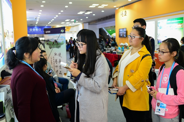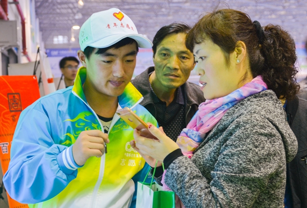 观众在向志愿者咨询展会信息