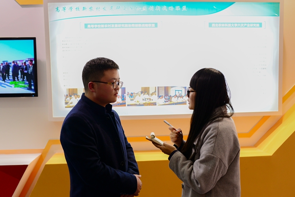 张晓宏是刘衍村的母亲,也是带来紫阳富硒茶叶的紫阳科宏茶业有限公司的销售经理。据她介绍,今年能有机会来到农高会这个展示平台,多亏了自己于今年5月份加入的秦巴山区科技特派员扶贫创业联盟的帮助。秦巴山区科技特派员扶贫创业联盟是全国高等院校新农村发展研究院协同创新战略联盟下属的扶贫联盟,系由来自或服务于秦巴山区五省一市(陕、甘、川、豫、鄂、渝)的60多家农业经营主体,联合以西北农林科技大学六次产业研究院为中心的四家单位,兼具公益性事业及组织开展合作交流、技术创新、产学研协作的农业科技创新创业的社会化组织。