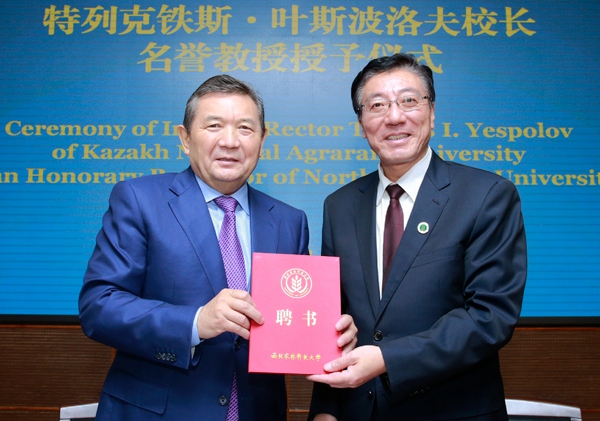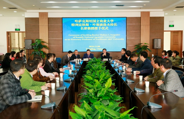 叶斯波洛夫校长表示,接受我校名誉教授的授予倍感责任重大,他邀请我校师生访哈,并邀请孙其信校长到哈萨克斯坦国立农业大学做讲座。他还回顾了中哈两国政府及西北农林科技大学与哈萨克斯坦国立农业大学之间已经建立的合作与交流,希望哈萨克斯坦国立农业大学能够与西北农林科技大学在农业经济、食品安全、马铃薯、水利方面开展深入合作。