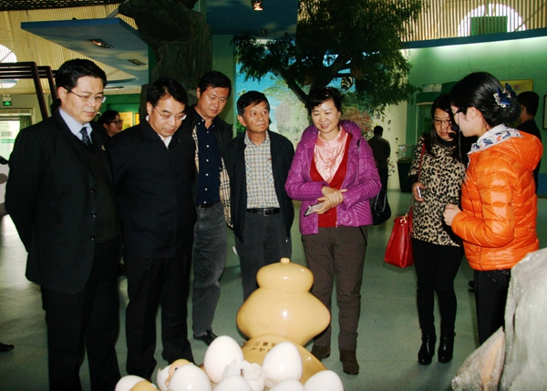 座谈会后,冷畅俭陪同李红民一行参观了我校博览园。