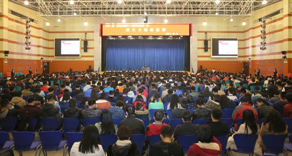 校党委副书记徐养福,党委各部(室)负责人,各学院(系、所)书记、副书记、党务秘书、党支部书记,全体学工秘书、辅导员、团工委书记、团学骨干800余人聆听了这堂特殊的党课。