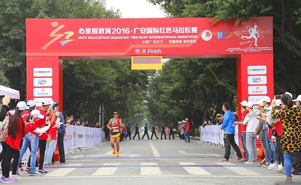10月16日,在四川广安——革命伟人邓小平的故乡,一场别样的“红色”国际马拉松赛圆满落幕。来自中国、埃塞俄比亚和肯尼亚等国的近万名选手参加了2016广安红色国际马拉松赛,我校资环学院一年级研究生周金华在全程赛中以2:50:08的成绩获得第四名,也成为此次马拉松大赛第一个到达终点的中国选手。
