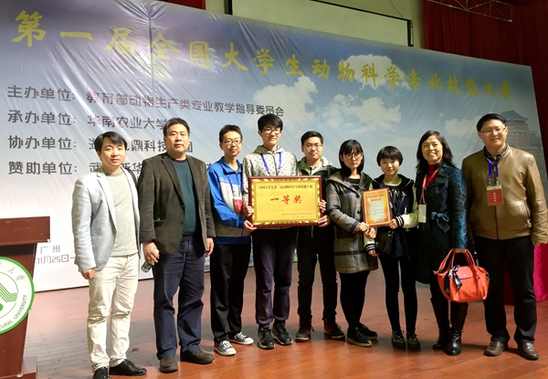 11月25日-27日,第一届全国大学生动物科学专业技能大赛在华南农业大学举行,我校动物科技学院孙超副院长任领队,宋宇轩、曹雨莉、王哲鹏、于太永任指导教师,动科专业2013级6班党燕娜,2014级2班史延、周小敏,4班何欢,5班张效禹等组成的代表队荣获团体一等奖。