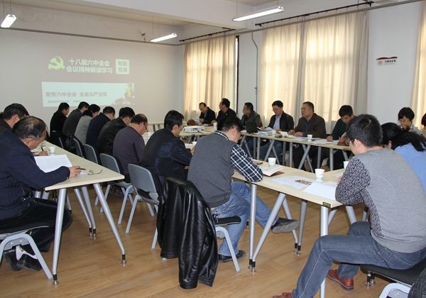 在学习讨论阶段,党员们积极发言。樊明涛教授说,通过学习十八届六中全会精神及关于新形势下党内政治生活的若干准则,我党治党准则可以归纳为“树立信心、规范行为”,他还结合学校学院实际,提出教师要树立服务意识,服务学生学习、服务科研、服务行业发展;管理人员要认真听取职工意见,及时解决实际问题。