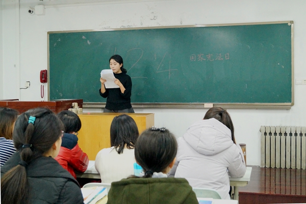 2016年12月4日是我国第三个国家宪法日。在国家宪法日来临之际,外语系积极组织开展了多种形式的宪法知识普及活动。12月2日,外语系组织观看全国教育系统宪法学习日现场活动。活动期间,宪法学习在师生间掀起了一股热潮。
