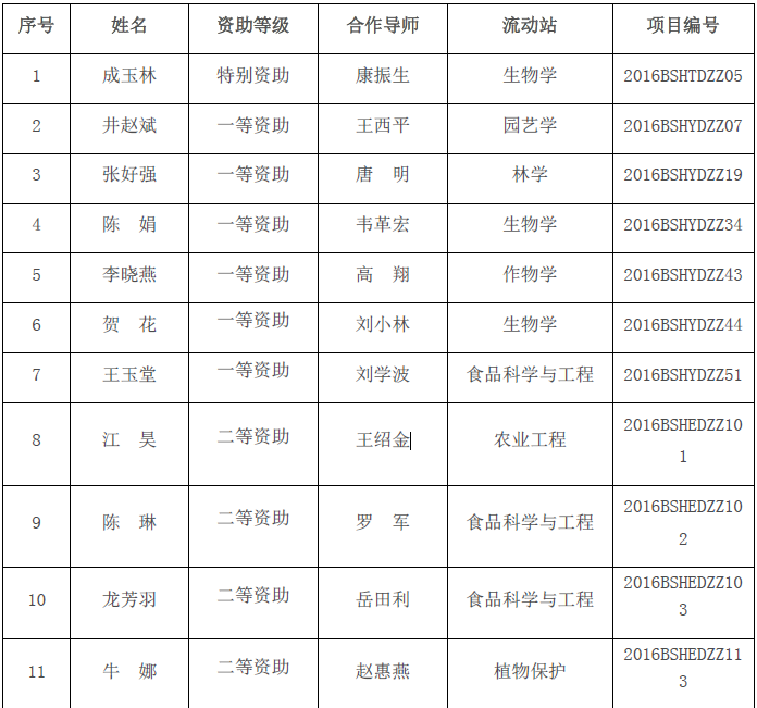 近日,陕西省人力资源和社会保障厅公布了2016年陕西省博士后科研项目资助人员名单,我校共有21名博士后获得本次资助,其中,特别资助1人,资助标准为10万元/人;一等资助6人,资助标准为4万元/人;二等资助14人,资助标准为2万元/人。