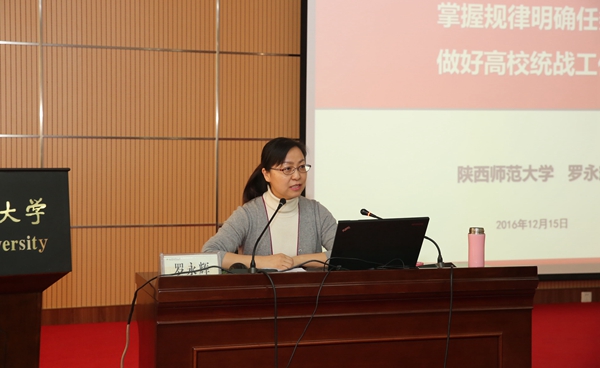 12月15日下午,我校在国际交流中心207报告厅举办“统战知识进高校 统战部长讲统战”宣讲报告会,陕西师范大学党委统战部部长罗永辉博士担任主讲。校党委副书记、纪委书记任应坤主持报告会,学校科级以上党员干部、各基层统战委员、民主党派负责人200余人参加了学习。