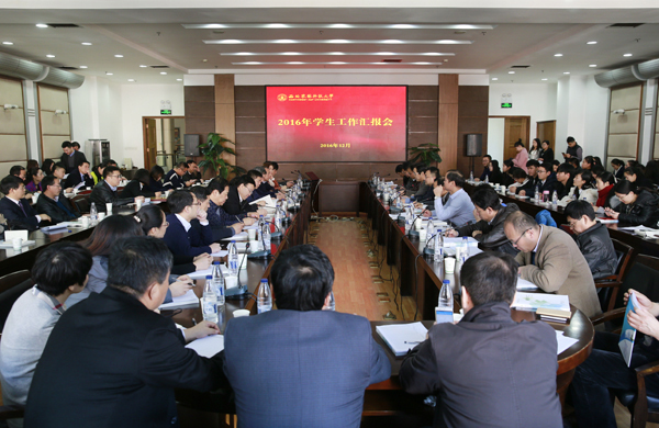 12月27日,2016年院系学生工作考评会在交流中心210会议室举行,校党委副书记吕卫东、相关单位负责同志担任评委,全体学工干部及辅导员出席参加。会议由党委学工部部长王文博主持。