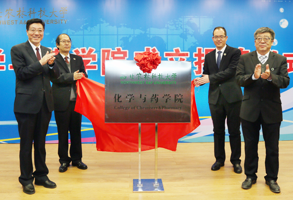 孙其信、吴普特、王进义、高锦明共同为“化学与药学院”揭牌