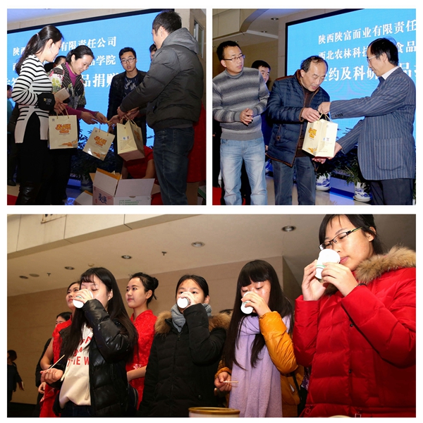 副校长冷畅俭,党委校长办公室、党委宣传部、校工会、科研院、科技推广处、教务处、就业指导中心、教育发展基金会负责人,陕富面业公司代表以及食品学院师生参加捐赠和发放活动。食品学院党委书记张振华主持捐赠仪式。