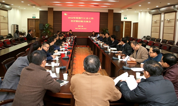 1月14日上午,学校召开2016年度部门工会工作考评暨经验交流会,全校29个部门工会主席及校工会委员会委员参加,校党委副书记、工会主席徐养福出席会议并讲话。