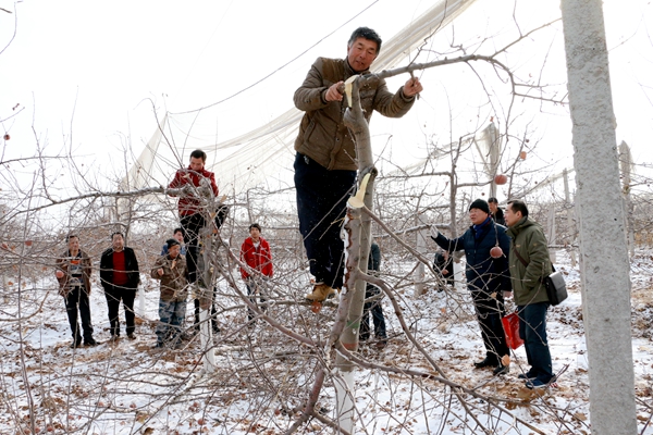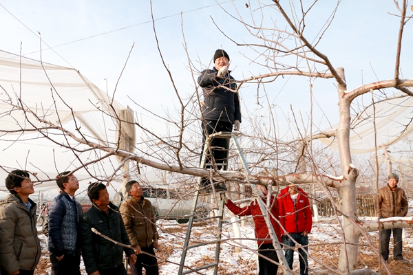 1月16、17两日,我校苹果专家赵政阳团队、陕西省农林科学院综合办一行赴延川县开展苹果专题培训及老果园间伐改造,并与延川县领导和负责部门对接协商2017年工作。梁家河环线现代果业科技示范基地建设工作正式拉开帷幕。