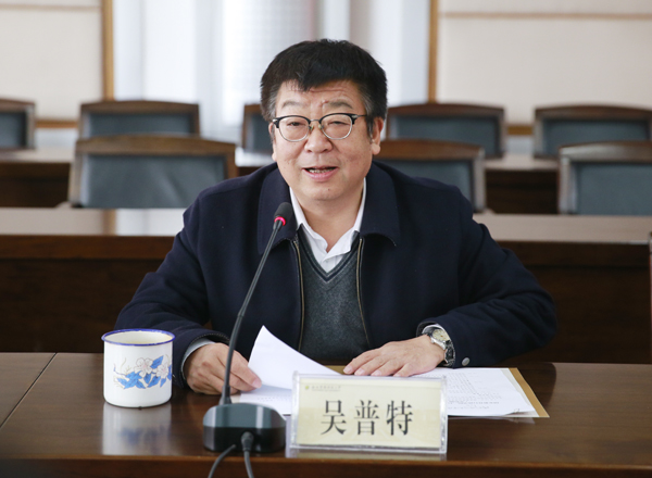 常务副校长吴普特向客人介绍学校概况