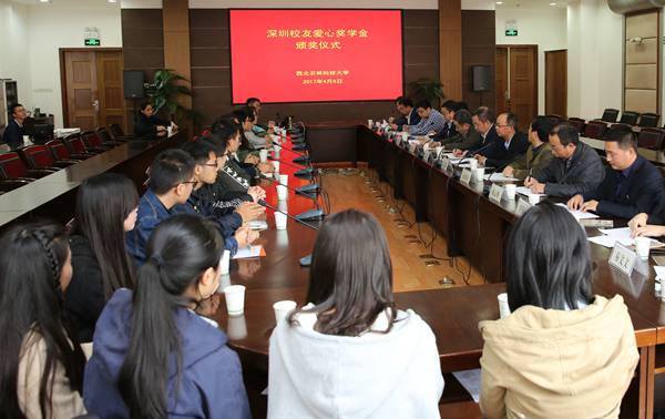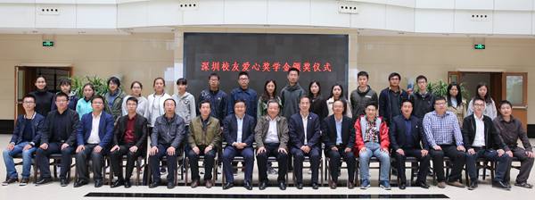 4月8日下午,深圳校友爱心奖学金首次颁发,我校2016级20名学子获奖。校党委常务副书记、教育发展基金会理事长赵忠,深圳校友会副理事长、深圳前海大一投资基金管理有限公司董事长王文博,深圳校友会会长、深圳市前景科技创新系统研究院院长张义为获奖学子颁奖。