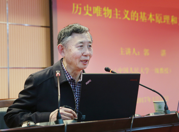 为提高干部教师理论水平和理论素养,增强用马克思主义世界观和方法论分析解决问题的能力,4月12日下午,中国人民大学一级教授郭湛应邀来校为干部师生作“历史唯物主义的基本原理和方法论”专题辅导报告。