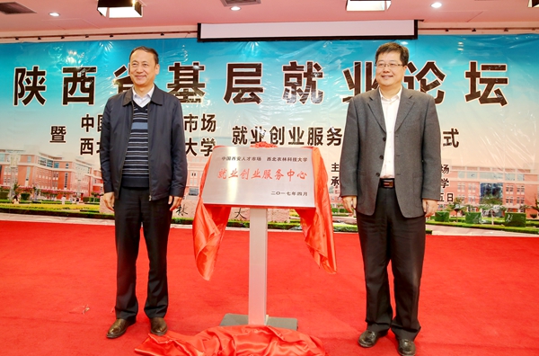 4月15日上午,以“基层就业,写就青春”为主题的陕西省大学生基层就业论坛暨中国西安人才市场西北农林科技大学就业创业服务中心揭牌仪式在我校交流中心208会议室举行。副校长罗军在论坛上致辞,并与中国西安人才市场管委会办公室、陕西省人才交流中心主任刘鹏程为中心揭牌。