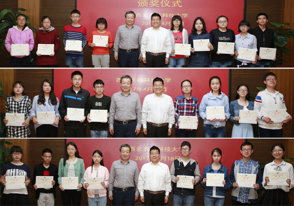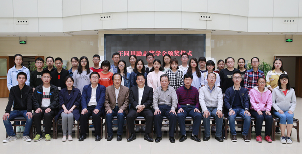 赵忠、王同川与获得奖学金的同学合影留念