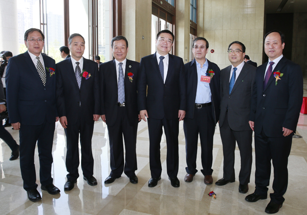 娄勤俭、胡和平、刘小燕、梁桂、张道宏等省上领导与校获奖代表合影留念