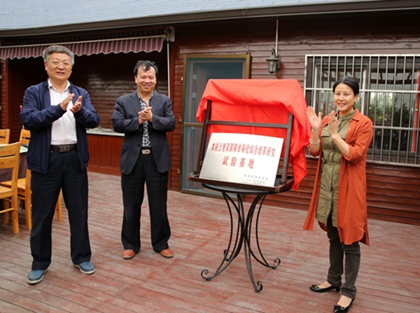 民进陕西省委秘书长高争丽和参政议政部干部,我校民进副主委吉红教授、民进会员魏欣副教授以及天聚成园林绿化苗木基地公司相关人员参加授牌仪式。