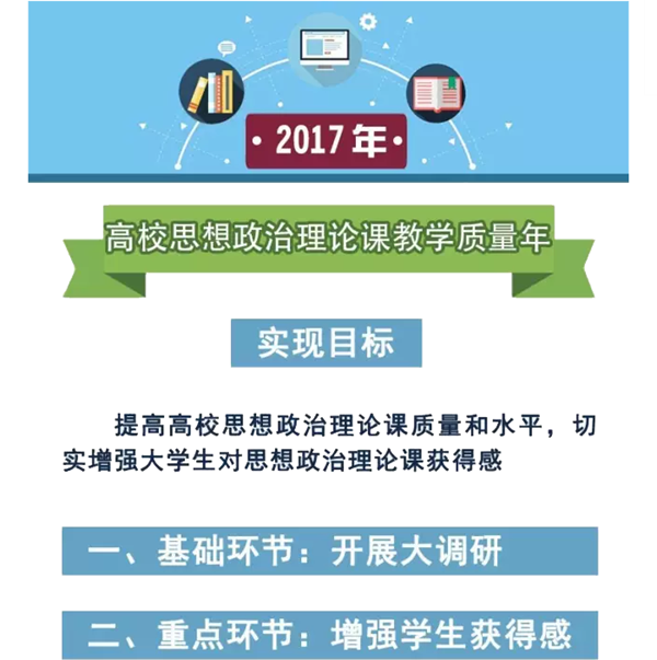 全国高校思想政治工作会后,教育部党组高度重视高校思政课建设,将2017年定为“高校思想政治理论课教学质量年”,并于近日审议通过《2017年高校思想政治理论课教学质量年专项工作总体方案》。