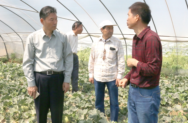 结束斗口试验示范站的调研后,李兴旺又来到泾阳蔬菜试验示范站调研,听取蔬菜站专家赵尊练的工作汇报,并就当日调研其他各站存在的主要问题进行现场办公,“有什么困难大家尽管说,能解决的现场处理,不能立刻解决的会后要抓紧商讨方案。”李兴旺亲切地对各位专家说。专家们就工作中的困难和问题进行汇报,李兴旺现场提出解决方案并要求相关职能部门尽快解决。