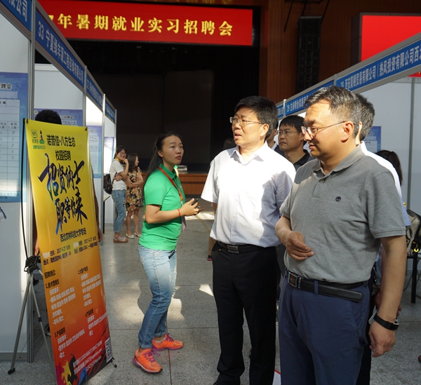 校党委副书记吕卫东在招聘现场与部分用人单位进行深入交流,全面了解相关行业的就业形势和学生面试情况。他强调,要细致做好用人单位的服务工作,各学院(系、所)要抓好、抓实这个平台,始终坚持以学生为本,提供持续精准的求职服务;要认真听取用人单位对学生实习和人才培养的意见和建议,努力为每位学生量身打造职业规划,为用人单位源源不断输送各类各层次毕业生,切实通过就业实习促进就业质量和就业率双提升。