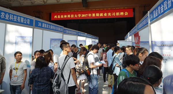5月27日上午,第二届就业实习招聘会在南校区绣山活动中心顺利举行,正式拉开了2018届学生就业工作大幕。来自陕西、北京、江苏等16个省市的90家用人单位携3000余个实习生需求岗位来校开展招聘。包括我校2018届及部分其他年级学生在内的近3500名学生参加了招聘会。当天,近900名学生与用人单位达成就业实习意向,后续的就业实习协议签订工作正有序推进。