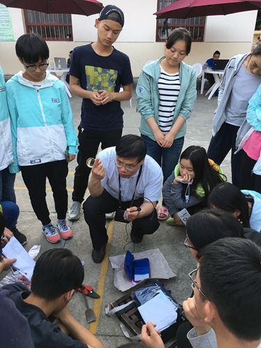 出发前,土壤学、动物学、植物学、生态学、气象学五门学科的老师分别向同学们讲解实验工具的使用方法以及可能用到的学科知识。同学们沿长安河道上行,听着老师的讲解,学习拍摄植物标本,在河道中辨识两栖类、鱼类动物。同学们迎着朝阳,扎起裤腿、不顾污泥,采集生物标本。