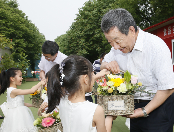 5月31日, “六一”儿童节来临之际,校党委常务副书记赵忠等来到学校北校区幼儿园,看望小朋友及辛勤工作的老师,并代表学校向幼儿园赠送了慰问金和孩子们喜欢的礼物。