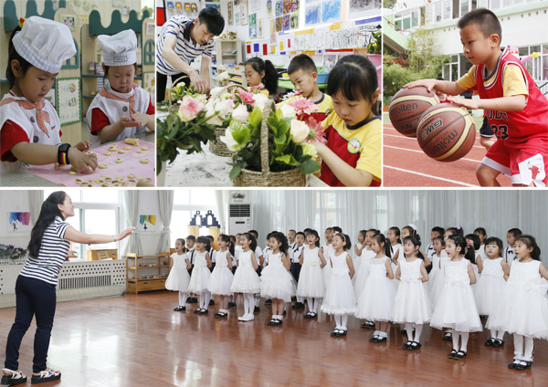幼儿园小朋友庆祝“六一”展示手工制作点心、插花和文体节目
