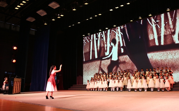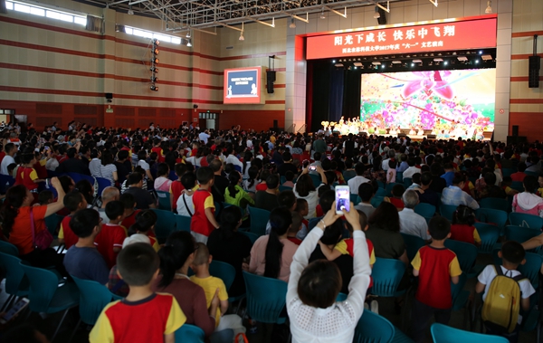 校领导冷畅俭等与家长共同观看庆六一文艺表演