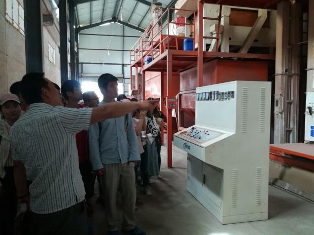 企业基地体验小麦生产过程。在陕西九丰农业科技有限公司,学生开展小麦种子繁育、加工与销售教学实习。公司负责人热烈欢迎师生到来,系统讲述了小麦生产销售过程,细致讲解不同机器作用、原理以及运行程序,学生仔细观察并进行提问交流。在小麦生产试验田,实习指导教师宋瑜龙和牛娜详细讲述选种、杂交、不同生育期处理、试验、收获等小麦种子繁育过程,让学生与不同小麦品种近距离接触,从专业角度评价小麦品种生长状况,在课堂理论知识学习的基础上对种子加工生产,以及产业发展现状与前景有了更加深刻的理解。