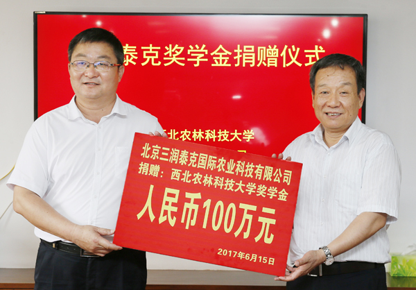 根据协议,北京三润泰克国际农业科技公司向我校捐赠100万元设立“三润泰克奖学金”,自2017-2026年每年捐赠10万元。每年奖励园艺学院20名本科生,每名学生每年奖励5000元。