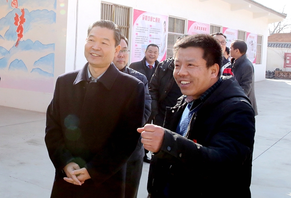 李兴旺在乾落村听取韩锁昌的汇报(王学锋摄)
