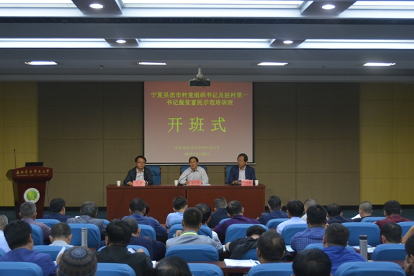 为实现打赢脱贫攻坚战的总体目标,围绕宁夏自治区第十二次党代会确定的今后五年实施“三大战略”、“五个扎实推进”的总体工作思路,吴忠市委市政府组织了“脱贫富民”主题培训,9月25日上午,为期5天的“宁夏吴忠市村党组织书记及驻村第一书记脱贫富民示范培训班”在我校顺利开班。