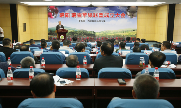 联盟还于当日上午举行了第一次成员大会,会上表决通过了瑞阳瑞雪苹果推广联盟章程和联盟组织机构。 来自渭南、咸阳、铜川、延安、榆林、宝鸡、庆阳、平凉、白水、庆城、灵台、淳化等市县果办、果业局相关领导以及联盟理事会全体成员共100多名企业界代表,以及我校相关部门负责人和赵政阳教授团队专家参加了联盟成立大会。