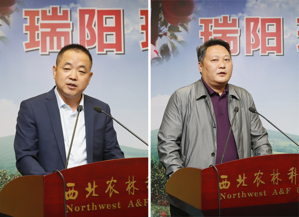 联盟成员代表、陕西淳化天麒现代农业发展有限公司总经理李振强在发言中表示,作为推广企业将严格遵循联盟的各项制度要求开展工作,并携手其他联盟理事单位一起共同努力,使瑞阳、瑞雪两个新品种发挥出最大的经济和经济效益。陕西省果业局生产管理处处长黄长科在讲话中表示,省果业局将大力支持瑞阳、瑞雪两个苹果新品种的示范推广,并助力“瑞阳、瑞雪苹果推广联盟”的健康发展和快速成长。