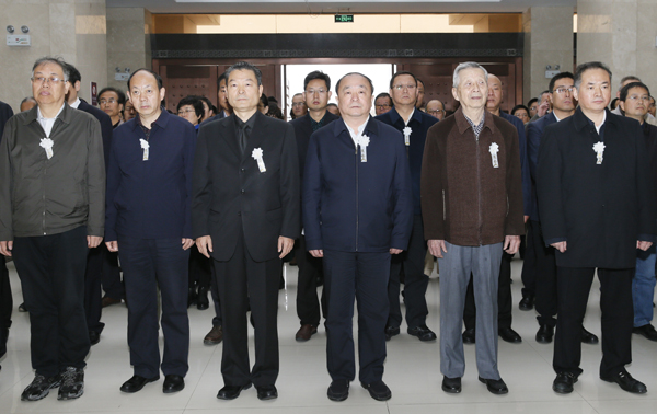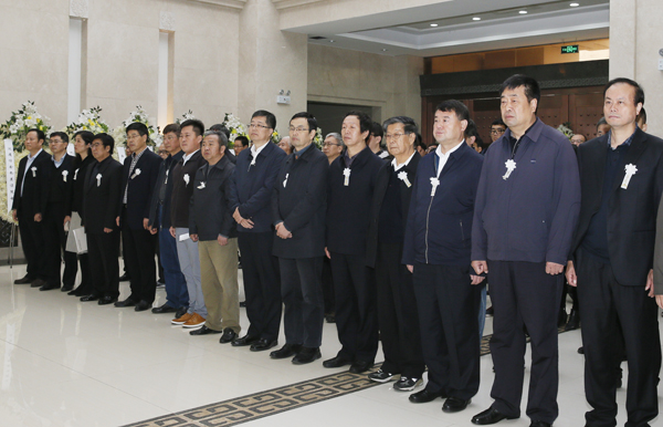 中共中央书记处书记、国务委员、国务院秘书长杨晶,十二届全国人大常委会副委员长、民盟中央主席张宝文,十一届全国政协副主席陈宗兴敬献花圈