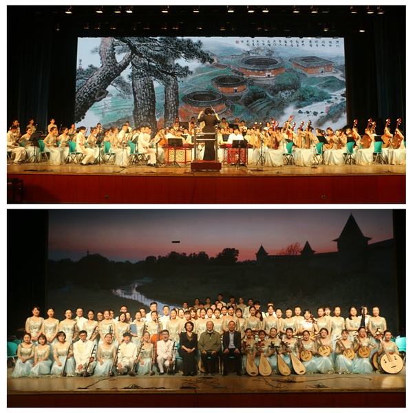 民族音乐会由校大学生艺术团阮乐团和民乐团共同演出,音乐指挥由中国著名阮咸演奏家、教育家、指挥家丁晓燕老师担任。阮乐团演奏的《多姆拉协奏曲》,将多姆拉琴的特殊音色展露无遗,其磅礴的气势与丰满的音色让听众热血沸腾,婉转的慢板令人流连忘返;《塔吉克的节日》充分利用弹拨乐器,形象描绘出塔吉克民族的粗犷豪放和节日的欢快热闹。民乐队演奏的《丰年祭》,欢腾的气氛随着快板乍然进入,两段主旋律分别由管乐和弦乐先后奏出,二胡连续的十六分音伴奏如同秋风吹拂夏的农田,遍野金黄,稻谷盈仓束。晚会在《花好月圆》的欢愉曲调中步入尾声,整场演出具有浓郁的中国民俗风情,弘扬了民族文化和精神。