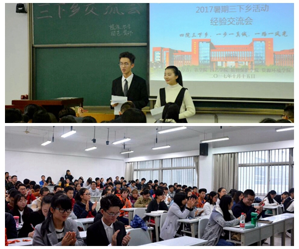 暑期三下乡是大学生接触基层、体验生活、参与实践、展现自我的重要平台。为使更多的同学了解“三下乡”,积极参与到实践活动中来,园艺、农学、植保、资环四院于10月15日在八号教学楼307教室举办了以“一步一真诚,一路一风光”为主题的三下乡经验交流会。各院优秀队伍回顾三下乡的点滴,记叙三下乡故事,彰显三下乡情怀,用真情诠释了大学生的社会责任感与使命感。