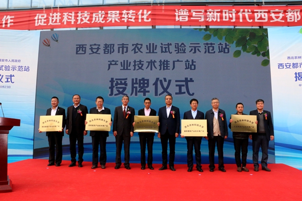 为了落实西安市人民政府与我校签署的《深化科技战略合作协议》,10月23日上午,我校西安都市农业试验示范站揭牌仪式在西安市现代果业技术展示中心举行,副校长钱永华与市政府党组成员市政协副主席杨广亭共同为“西北农林科技大学西安都市农业试验示范站”揭牌。